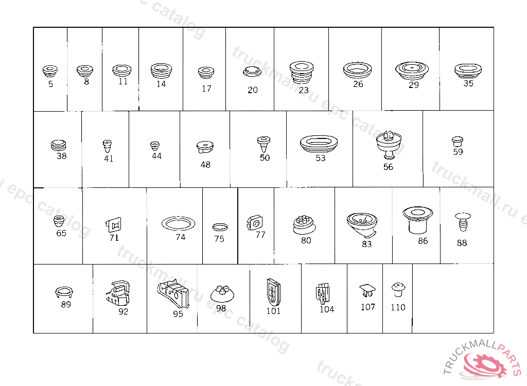 RUBBER BUFFER TO PLUG THE MOUNTING HOLE USED FOR GROUND CONNECTION IN CASE OF R.H.D.