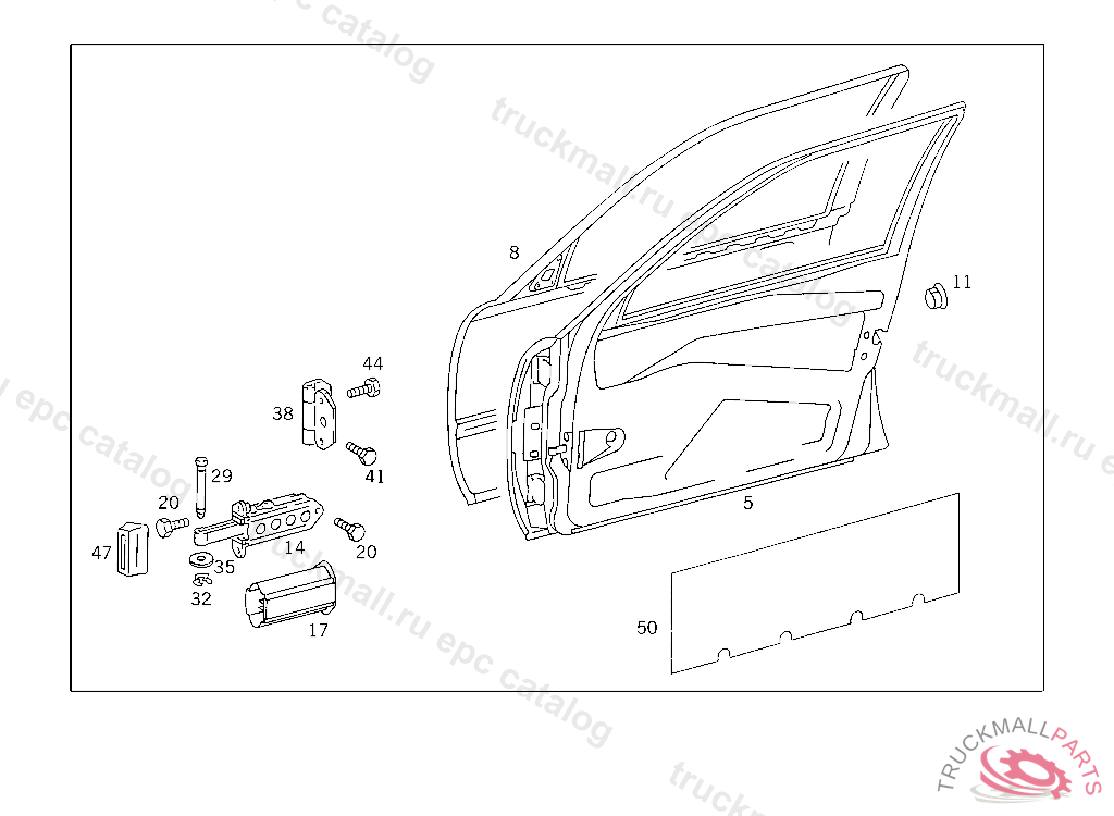 DOOR SHELL RIGHT, IN CASE OF VEHICLES LESS BURGLARY ALARM SYSTEM,ORDER ADDITIONALLY: 1X 126 987 04 44 NOT FOR AUSTRALIA