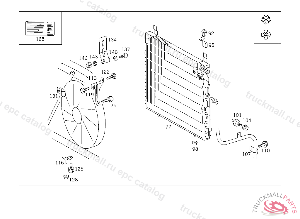 INTERMEDIATE LAYER CONDENSER TO STIFFENING AND TO FRONT CROSS MEMBER