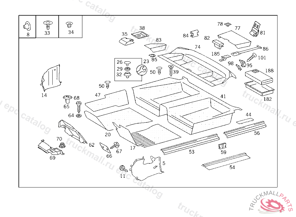 PANELLING REAR PANEL,TOP,HAT TRAY, ONLY WITH HEADREST RECESSES,NO.9A88I NO.5B01I NO.8E94I NO.8E95I NO.8E93I NO.6B54I NO.3B35I NO.7C29I IIIIIIII