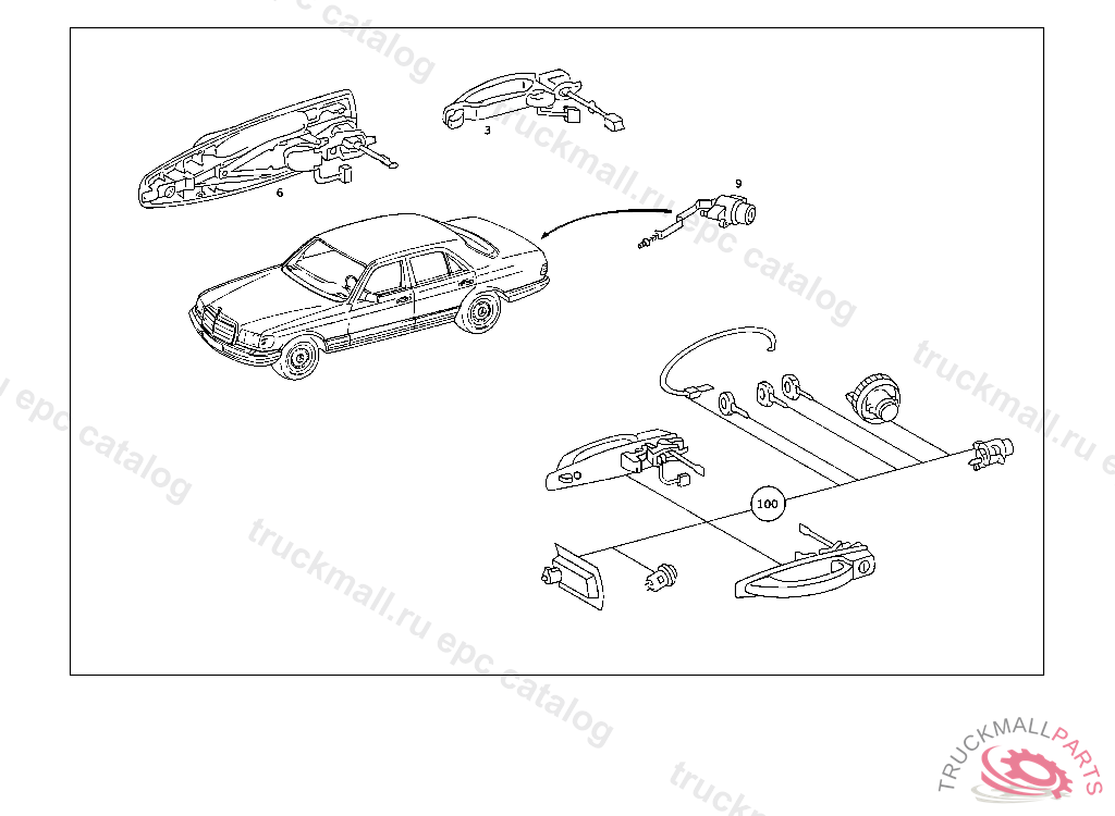 DOOR HANDLE , FIRST EXHAUST STOCK OF OLD PARTS UP TO IDENT NO. A 452298, Replaced By: A1267609359