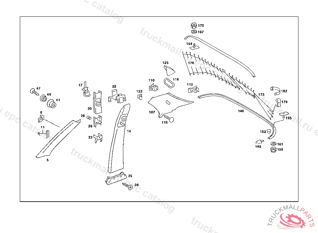 PANELLING CENTRAL PILLAR,RIGHT,NO.9045I NO.5070I NO.8310I NO.8320I NO.8411I NO.6093 AI NO.3111I NO.7095I I NO.6121 BI