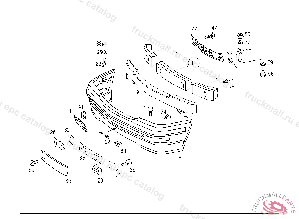 FRONT BUMPER FACE BAR INSIDE PART, F 125157 EXCEPT CODE 806 ALSO INSTALLED IN VEHICLE FROM F 125158 WITH CODE 805