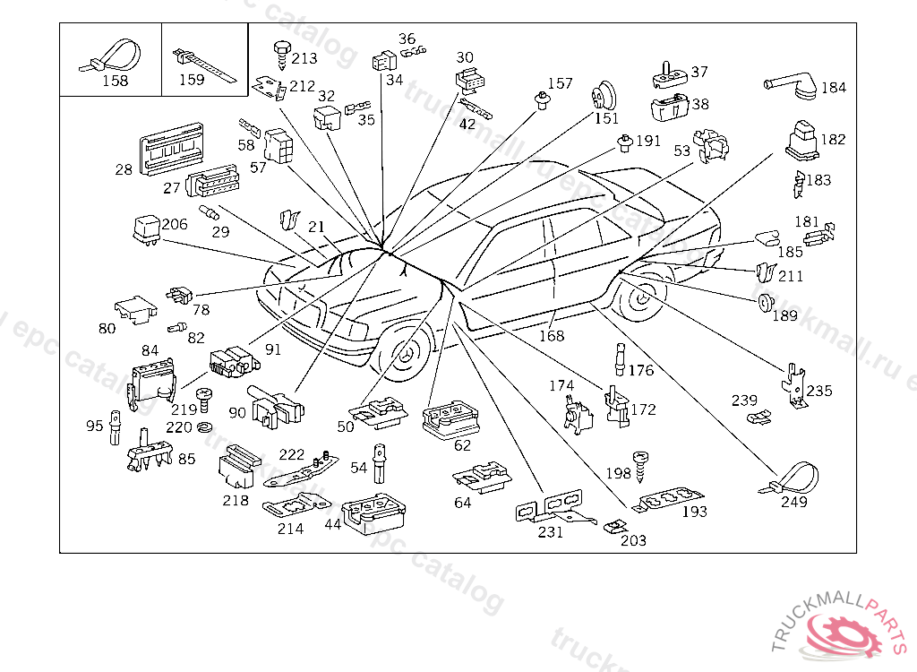 CABLE HARNESS AUXILIARY HEATER, 124. A 810021F 057582B 528615