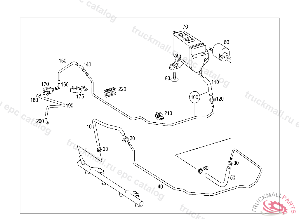 HOSE DISTRIBUTOR TO REGENERATION VALVE, RIGHT, F 125158 EXCEPT CODE 805 ALSO INSTALLED IN VEHICLE TO F 125157 WITH CODE 806