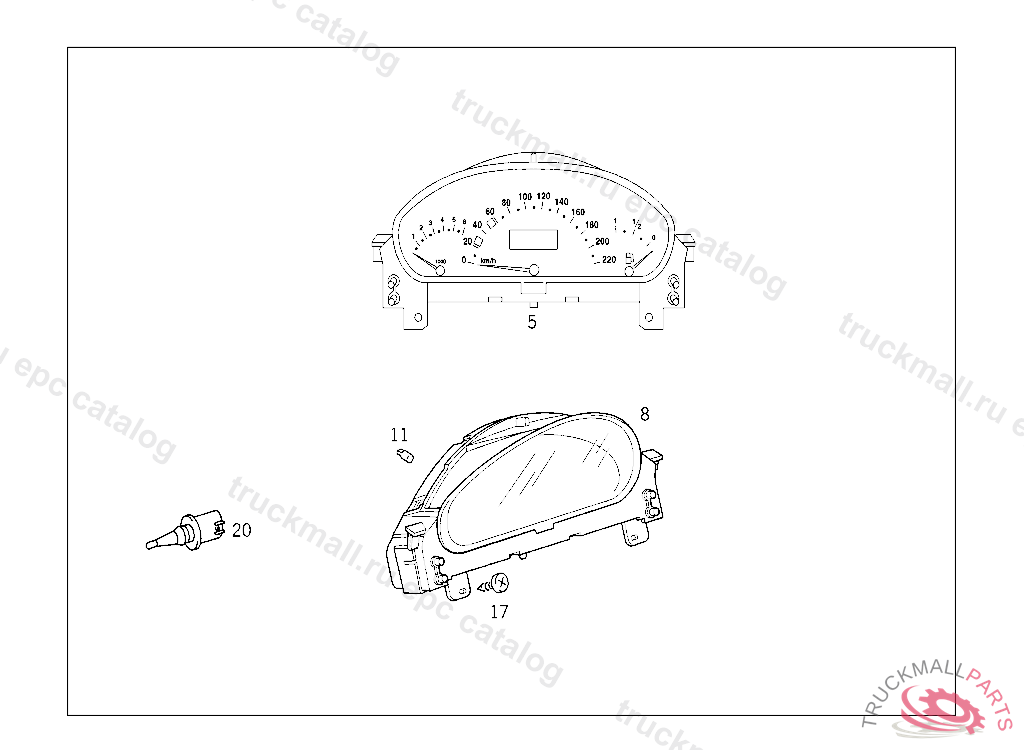 INSTRUMENT CLUSTER READING IN KILOMETRES 220 KM/H, A 05066120030630804, Replaced By: A1685407711