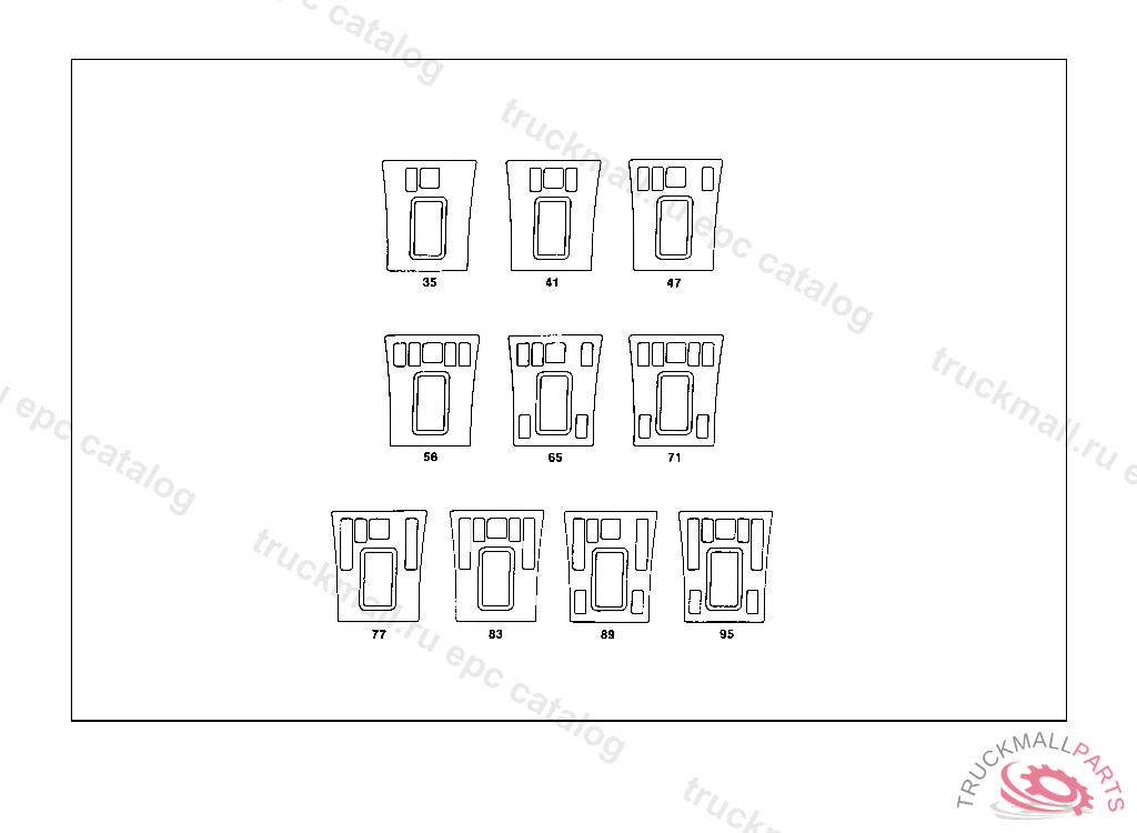 COVERING QUADRUPLE ELECTR. WINDOW REGULATOR,FADER CONTROL,LEFT & RIGHT SEAT HEATERS, A 005751 F 000121