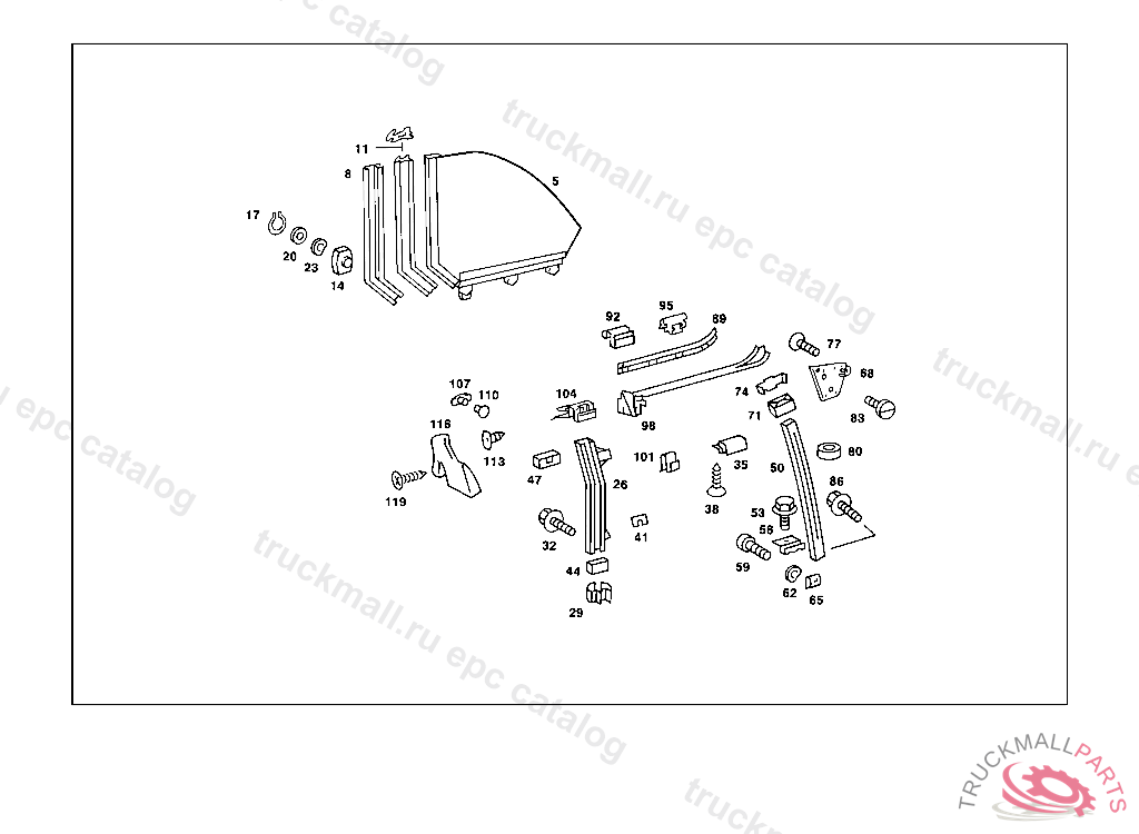 COVERING CRANK-OPERATED-WINDOW GUIDE RAIL, 043 001641 050 001004 053 003555