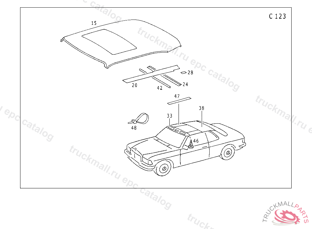PANELLING FRONT ROOF RAIL, UP TO CHASSIS NEW EQUIPMENT 9/79 123.043 015205 EXCEPT FOR 014184,014457,014507,015028,015174,015178-015180,015183-015186,015188-015190,015192-015194,015196- 015200,015202-015204. 123.050 003402 EXCEPT FOR 003396,003397,003399-003401. 123.053 016975 EXCEPT FOR 015499,015998,016104,016438,016439,016465,016546,016578,016737,016854,016856,016924,016954,016961, 016962,016964-016974. 123.150 004949 EXCEPT FOR 004935-004937,004939,004941,004942,004944-004948. NO.8227 INO.8227 INO.8261 INO.8262 INO.8263 INO.6070 I