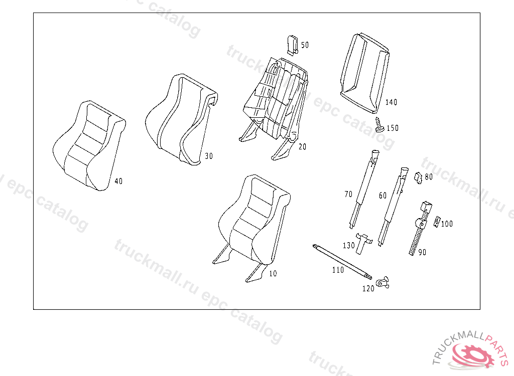 BACKREST LEFT SEAT, A 498236 F 618161 A 531257 F 664340 NO.9052 II I