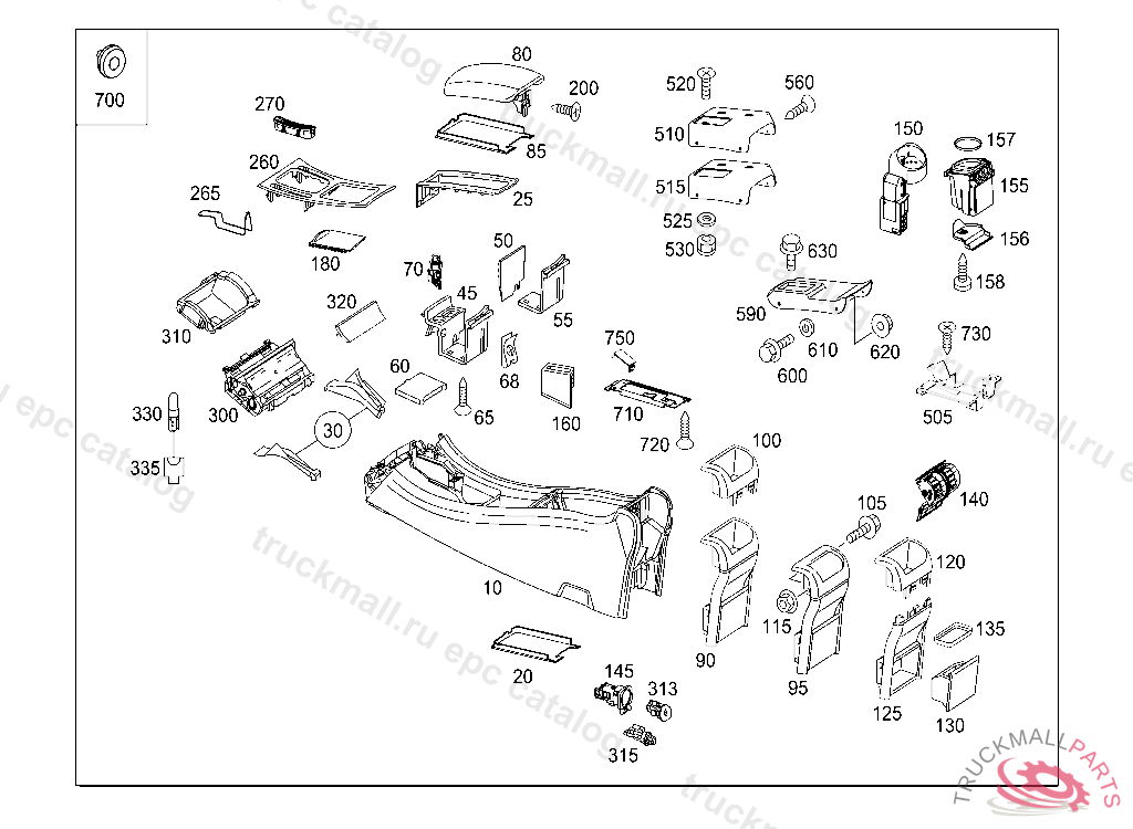 TRAY CENTRAL CONSOLE REAR, E 01938620050630805 A 66602420040430805 F 59396620040531805 R 15626520040630805
