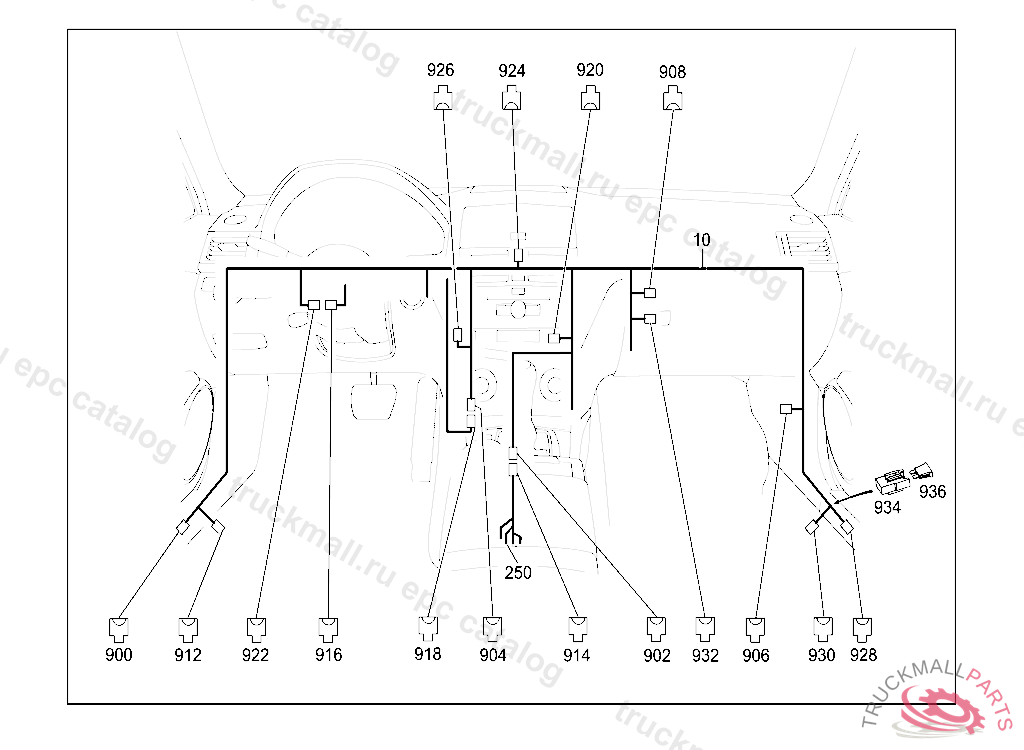 WIRING HARNESS COCK PIT WIRING HARNESS, STATE IDENT NO. WHEN ORDERING THE CORRESPONDING SPECIAL EQUIPMENT IS CONTAINED IN THE WIRING HARNESS ACCORDING TO THE VEHICLE PRODUCTION NUMBER