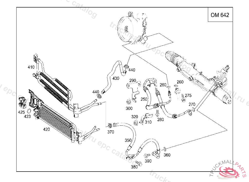 LOW-PRESSURE LINE FROM STEERING TO COOLING PIPE, A 05916820070630 F 02858820070701 R 00476320070903, Replaced By: A2044606524, +001A2044605324