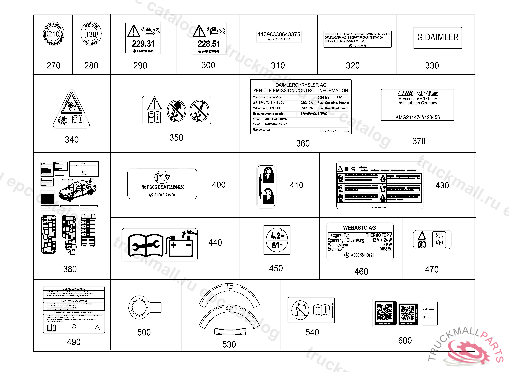 CERTIFICATION PLATE CERTIFICATION PLATE, F 53986820100630 WHEN ORDERING, THE AMG COUNT NUMBER MUST BE SPECIFIED FOR "SPECIFICATIONS FOR STAMPING THE TYPE PLATE" UNDER VIN, SEE VEDOC/CERTIFICATION