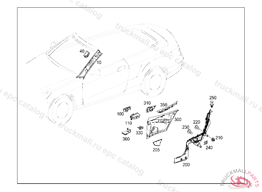 TAKE-UP DEVICE DRAFT-STOP TO REAR PANELING, LEFT