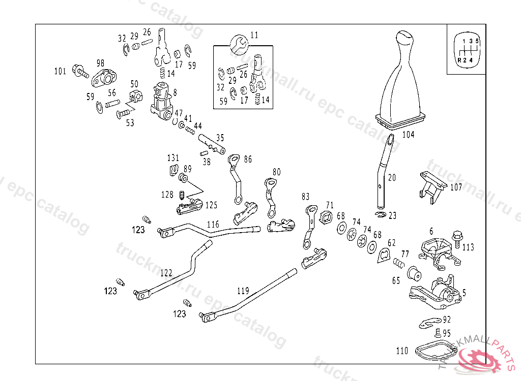 SHIFTING TUBE FOUR-GATE SHIFT, 124.0,124.1 : F 063053 124.2,124.3 : F 079077