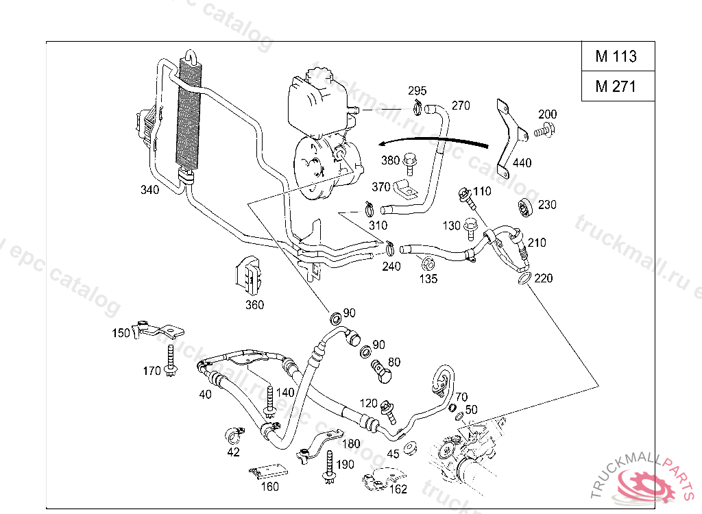 HOSE FROM STEERING TO COOLING PIPE, Replaced By: A2114605124