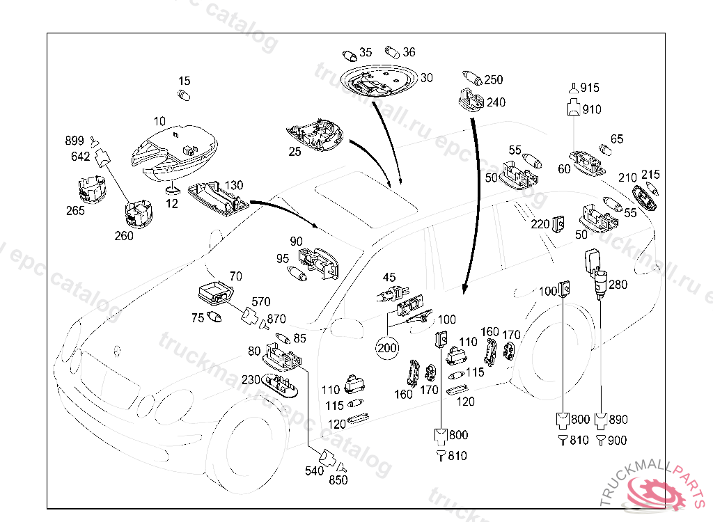 INTERIOR LAMP IN HEADLINER,REAR, Replaced By: A2118207501