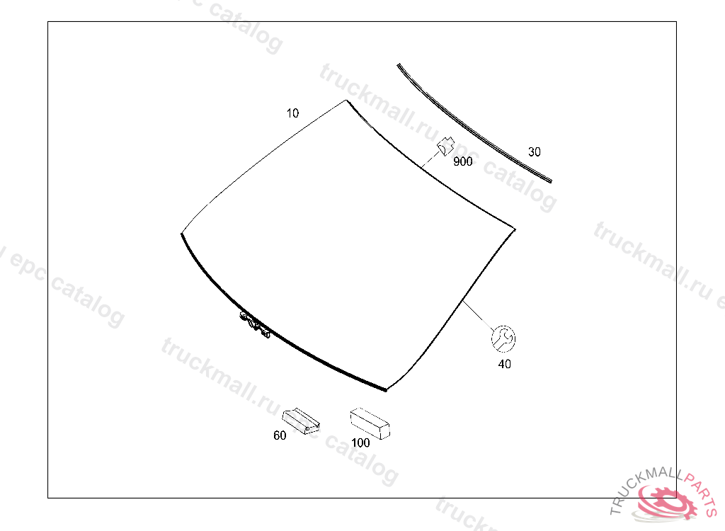 WINDSHIELD , ALSO ORDER: COVER A 204 822 01 40 - FOR COLOR SEE PART INSTALLED EX WORKS IN DG 82-TU 613-PICTURE 100