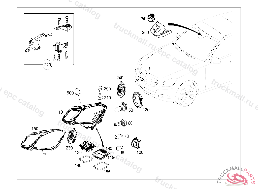 HEADLAMP UNIT LEFT, A 38249220101202 P A 379306A 380982A 380991A 381013A 381098A 381140A 381145A 381343A 381427A 381430A 381484A 381545A 381632A 381720A 382200 FIRST EXHAUST STOCK OF OLD PARTS UP TO IDENT NO. A 49056720110728, Replaced By: A2128206759