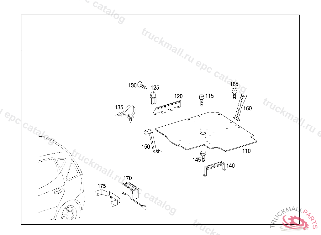 BRACKET FUSE HOLDER ON PLATE IN SPARE WHEEL RECESS