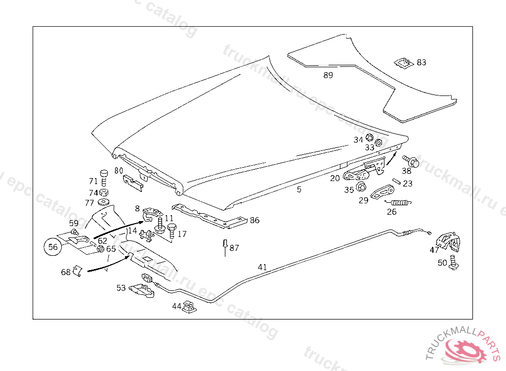 HINGE RIGHT,LESS INTERIOR LOCKING MECHANISM,F 085718 ATTENTION: PRIOR TO INSTALLATION,CHECK ENGINE HOOD TILT LOCKING LEVER ON THE LEFT