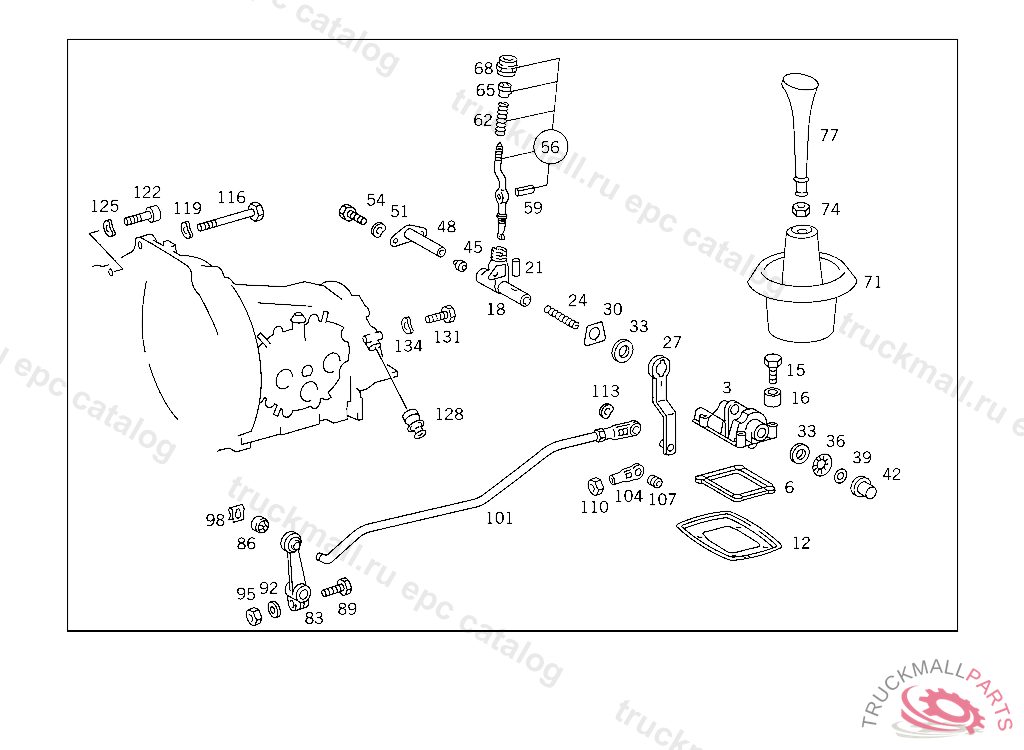 SHIFT LEVER 1ST THRU 4TH SPEED, 000 134645 003 068549 007 055244 083 002543 086 001979 093 002282 102,103 119043 105 140054 183 004351 190 005605