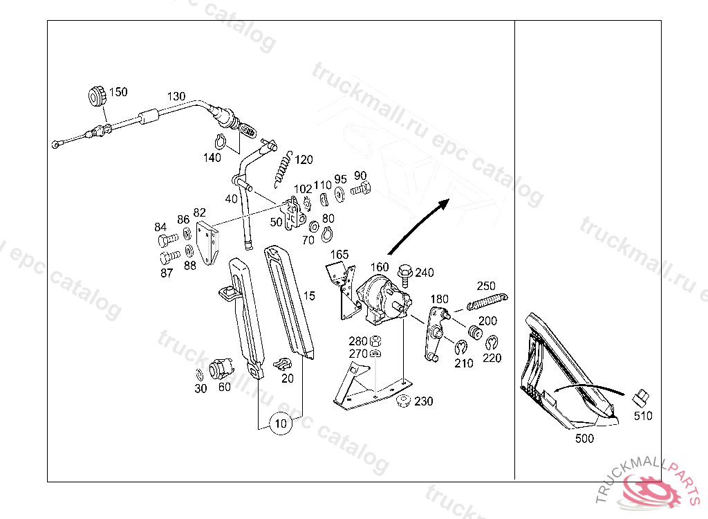 BEARING PEDAL LEVER TO FRONT PANEL, FROM IDENT NO. 941506, P 000001 ALSO INSTALLED ON 899081-941503 ONLY WITH OM601/OM602 ENGINE