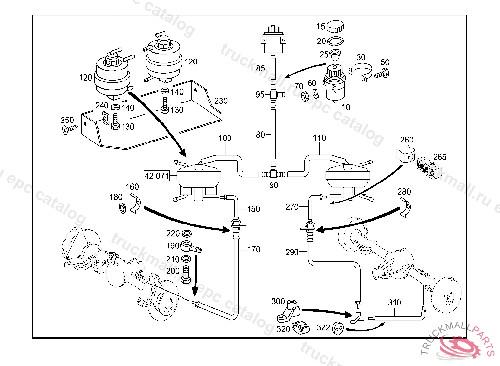 HYDRAULIC LINE BETWEEN DISTRIBUTOR AND SLVE CYLINDER FOR REAR AXLE 310 MM