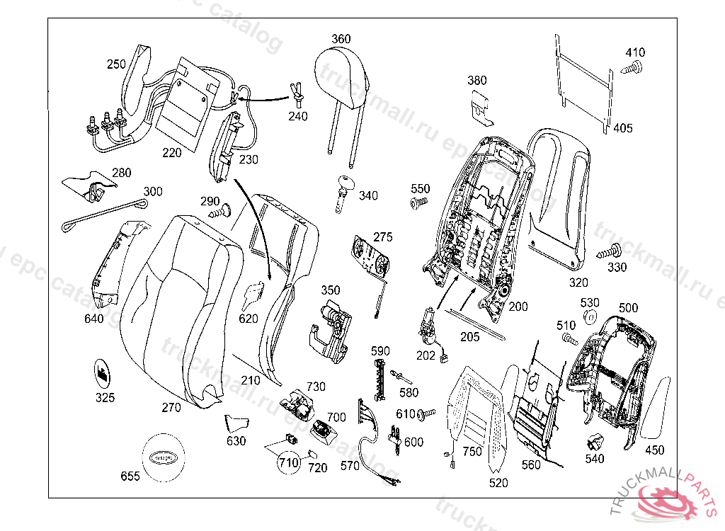 BACKREST FRAME , E 01938620050630805 F 59396620040531805 R 15626520040630805