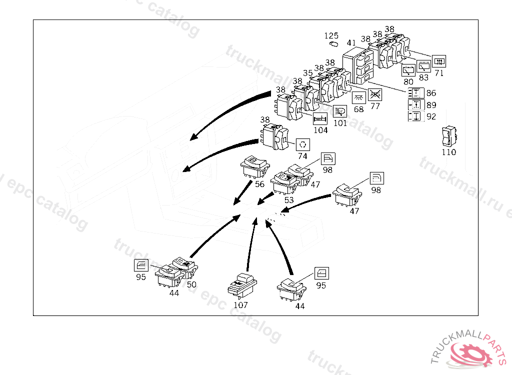 SWITCH POWER WINDOW,CENTER CONSOLE AT LEFT,4X