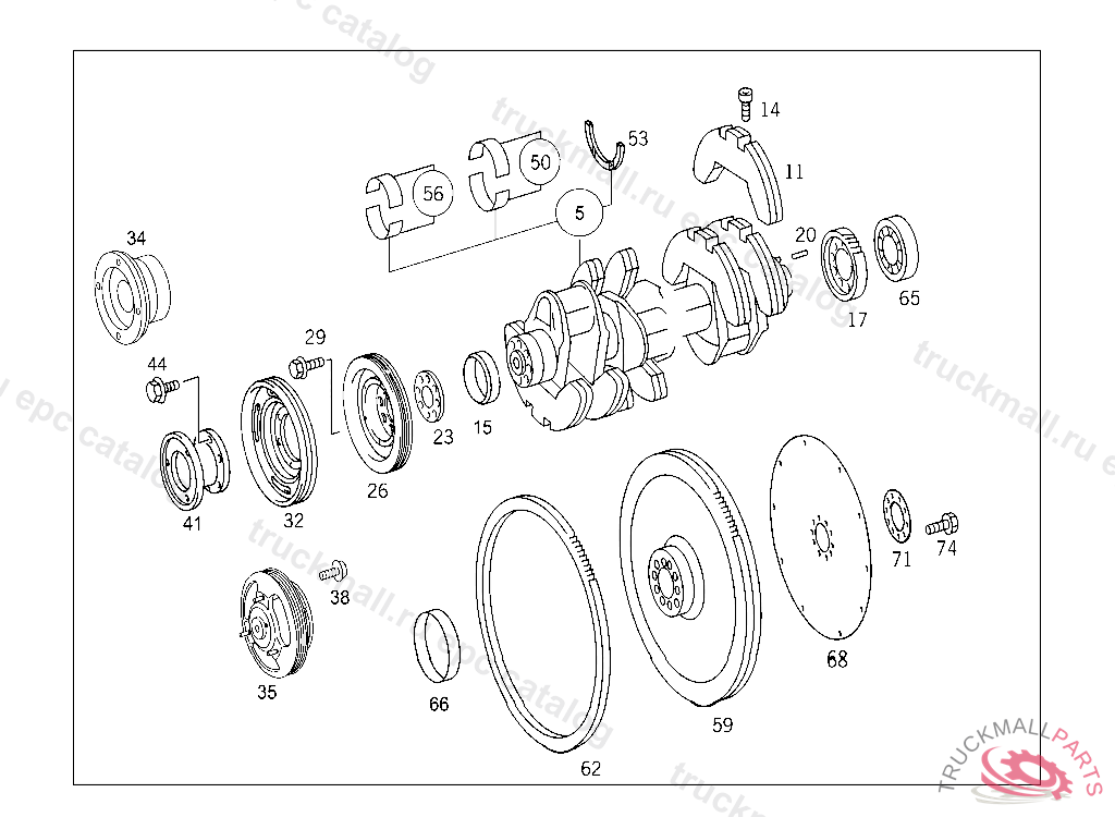 CRANKSHAFT WITH CRANKSHAFT BEARING SHELLS AND CONNECTING ROD BEARING SHELLS, EXHAUST STOCK OF OLD PARTS UP TO ENGINE 534173, Replaced By: A5420301201