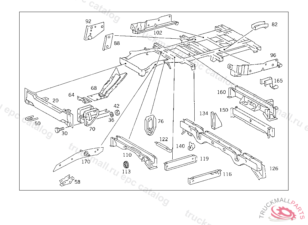 CROSS MEMBER , 10/50 UP TO CHASSIS 232362 20/60 UP TO CHASSIS 231604 FROM CHASSIS500001-547854, Replaced By: A6013100424, +001A6012570076