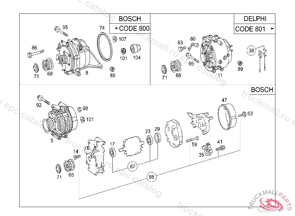 ALTERNATOR14V/150A, COMPONENT PARTS NOT AVAILABLE 203 A 237173 203 F 177684 203 R 028781 210 B 438526 210 X 065664 901-904 R337626 638 246705 SEE CHASSIS PARTS KIT FOR "FROM VIN" NO. PART IS ONLY OR ALSO SUPPLIED AS RECONDITIONED PART