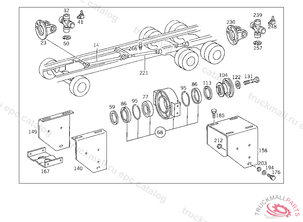 PROPELLER SHAFT FROM PROPELLER SHAFT BEARING II TO REAR AXLE 1247 MM, PART IS ONLY OR ALSO SUPPLIED AS RECONDITIONED PART
