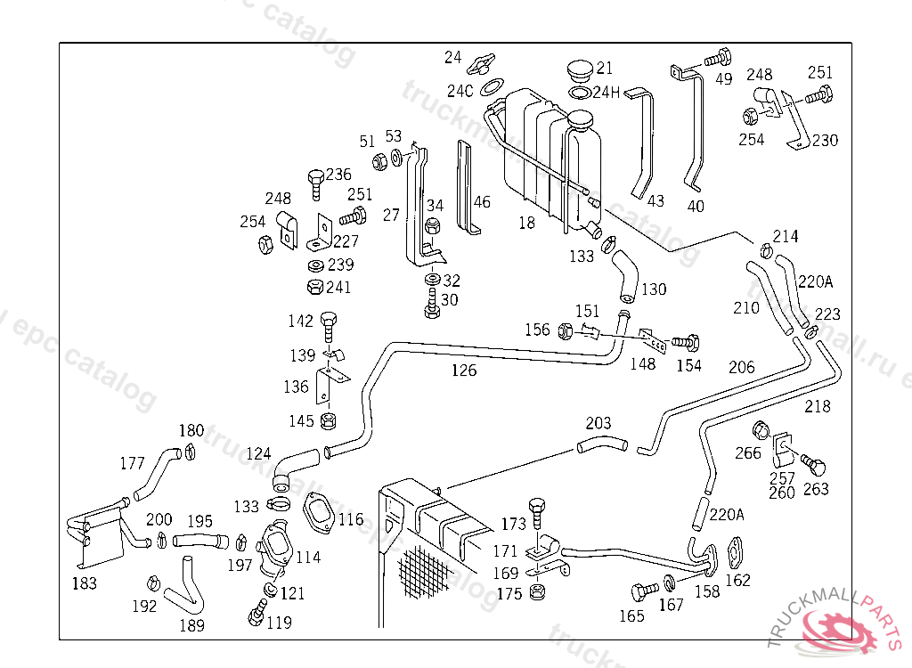 BREATHER PIPE VENTILATION, FROM RADIATOR TO EXPANSION TANK, 415 5 014668 416 5 000515 417 4 972023 FOR USE WITH SHORT MERCEDES-BENZ CAB