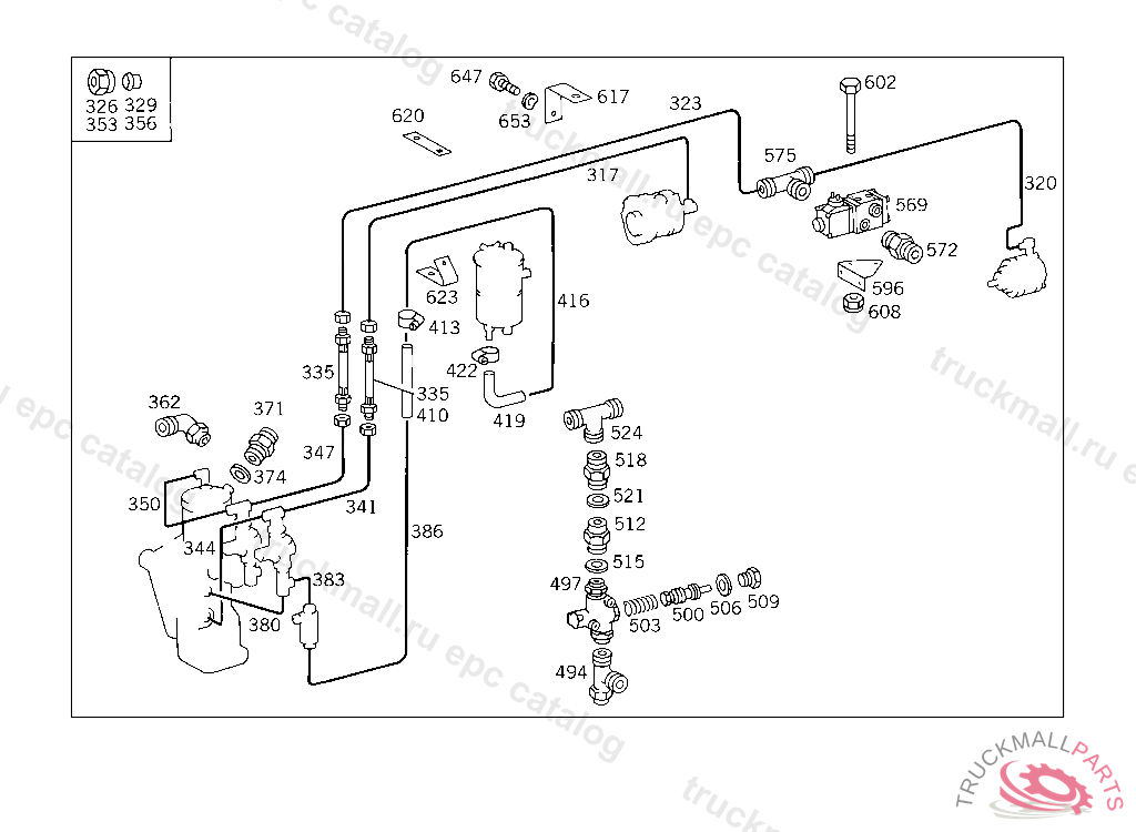 LINE FROM TWO-WAY VALVE TO HOSE 1, 005,009 5 399649 015,018,018,025,028,029 5 401092, ALSO INSTALLED IN 5 400444