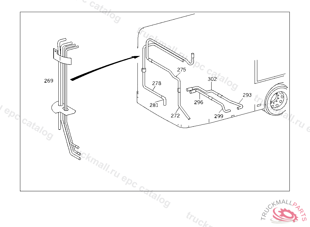PIPE LINE FEED, HEATER ON THE BEHIND FRONT AXLE
