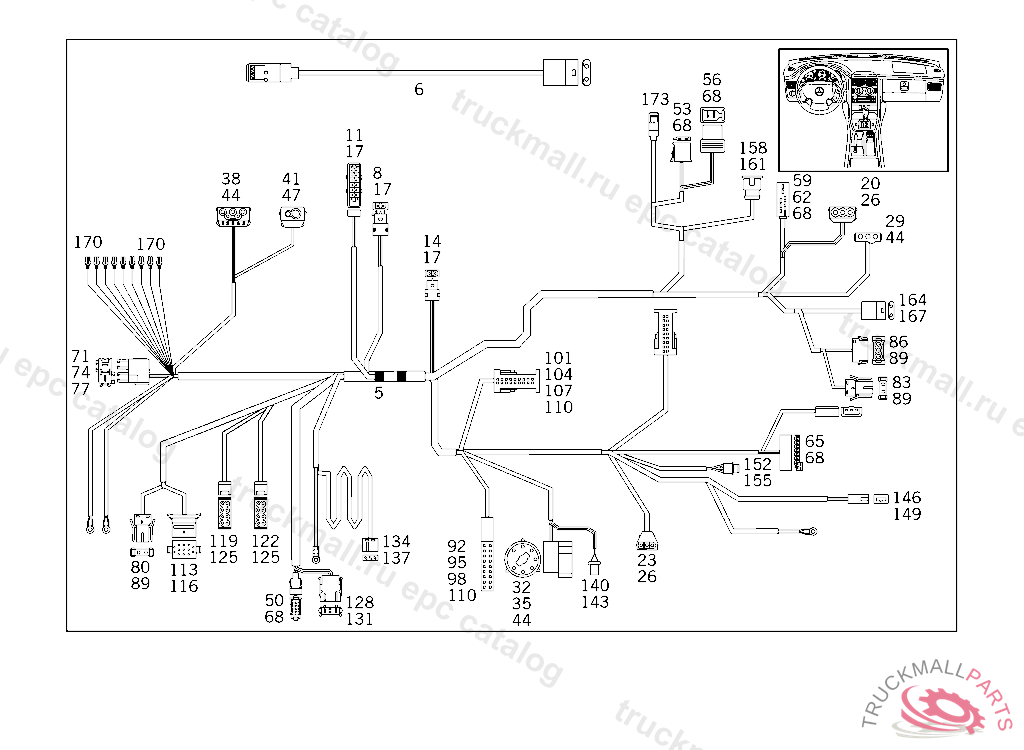 CABLE HARNESS COCKPIT CABLE HARNESS USED WITH TEMPMATIK, F 025730 EXCEPT CODE 808 ALSO INSTALLED IN VEHICLE FROM F 025731 WITH CODE 807