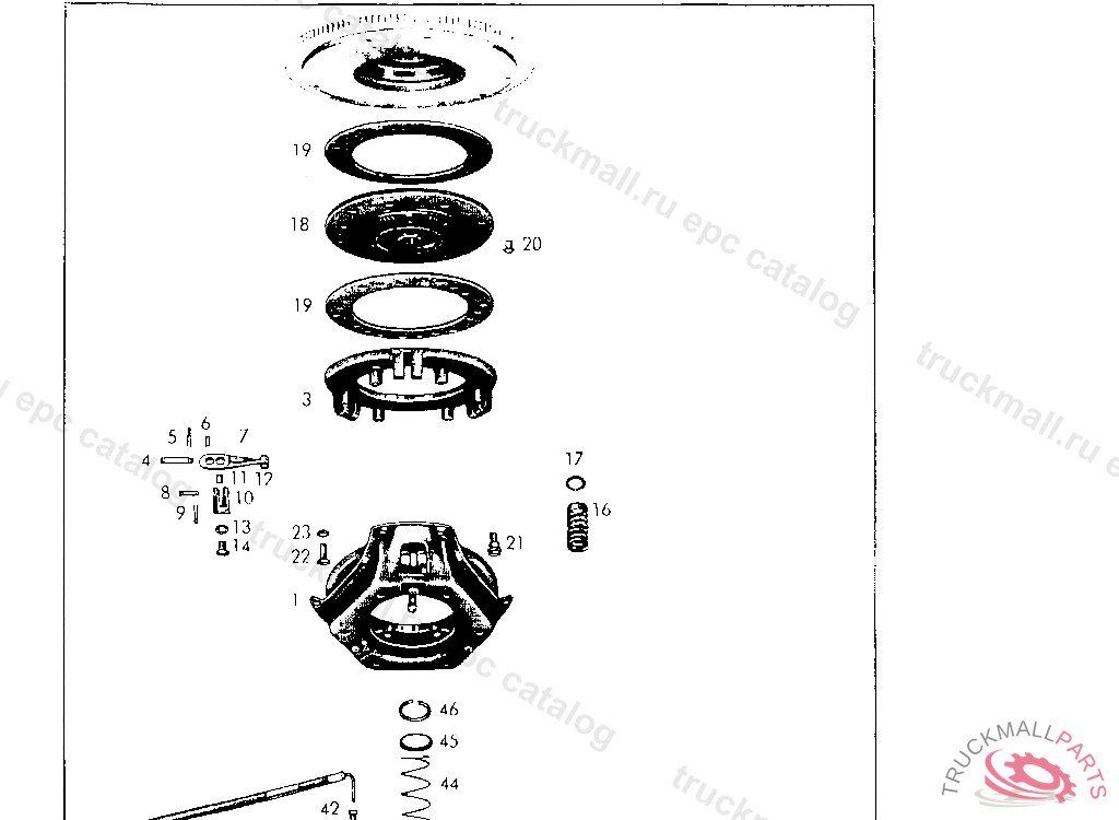 SPINDLE , UP TO IDENT NO. 760271 EXCEPT FOR 500001-599999 AXLE BORE IN PRESSURE PLATE TO BE REAMED FROM 8.0MM TO 8.1MM, Replaced By: A0002523516, +001A0002526413, +001A0002522914, +001A0002523816, +040A0002520018, +001A1249945241