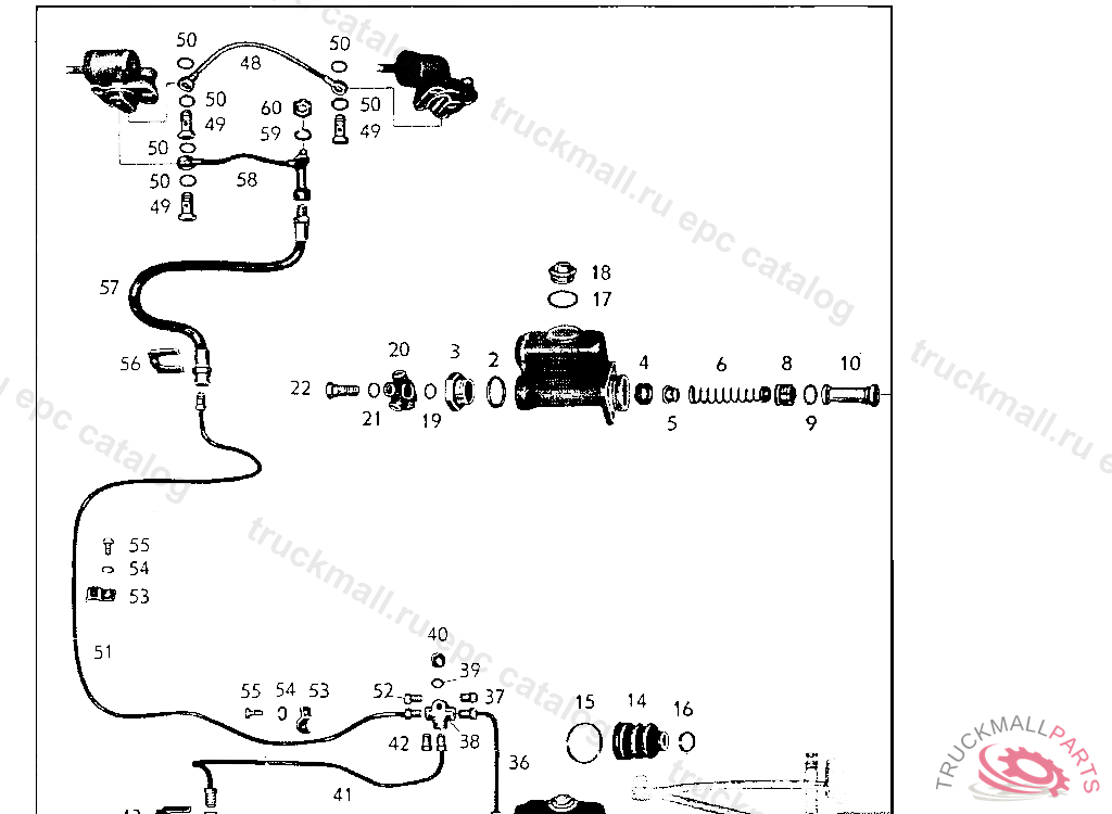 HAUPTBREMSZYLINDER 25,4 O(1") MIT DRUCKSTANGE, GUMMIMANSCHETTE UND ANSCHLUSSTEILEN