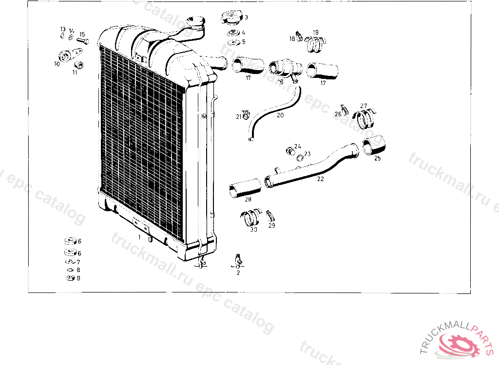 COOLING WATER LINE. COOLING WATER PIPE FOR WATER PUMP TO RADIATOR UP TO CHASSIS 001739, NOT VALID FOR AIR CONDITIONING SYSTEM