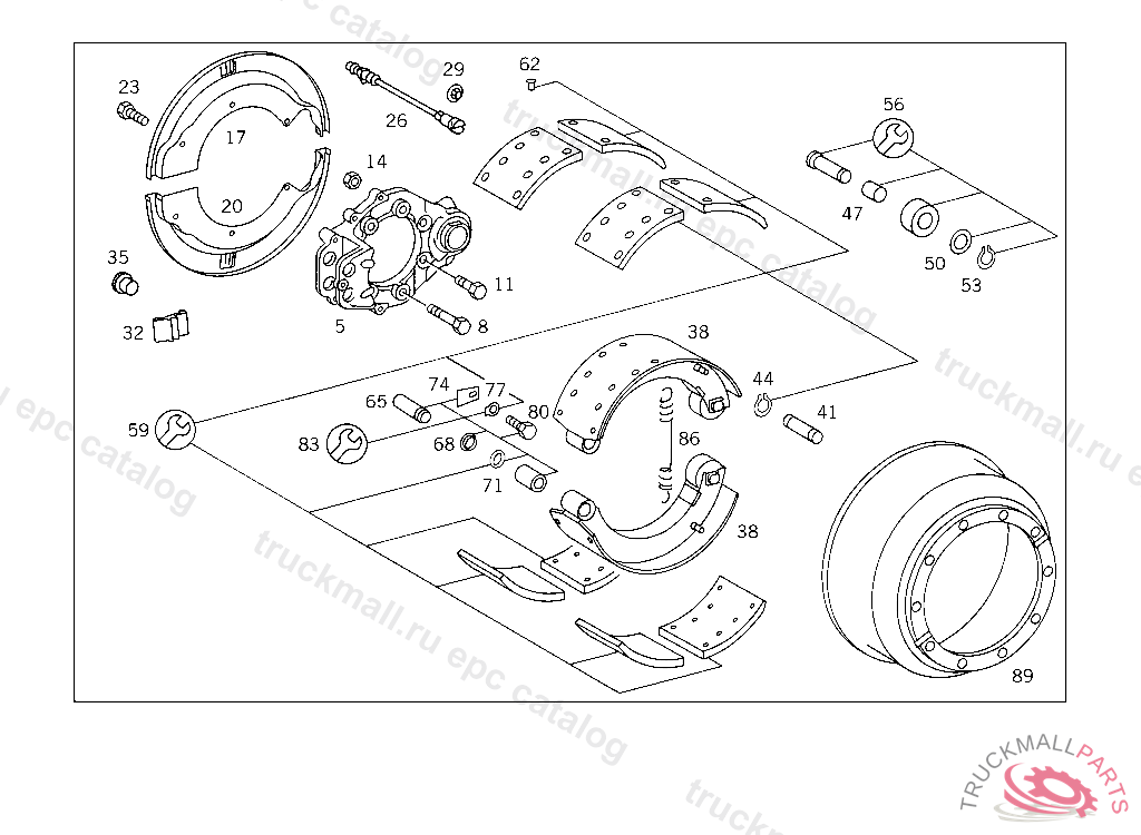 42 REAR WHEEL BRAKE - 150 BRAKE ANCHOR AND BRAKE SHOE