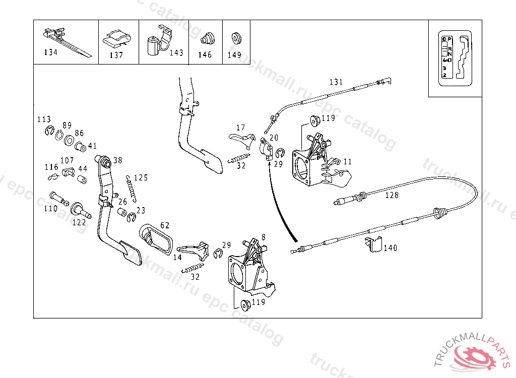 CABLE PARKING INTERLOCK, A 519674 F 619721 EXCEPT CODE 807 ALSO INSTALLED IN VEHICLE TO A 519673, F 619720 WITH CODE 808