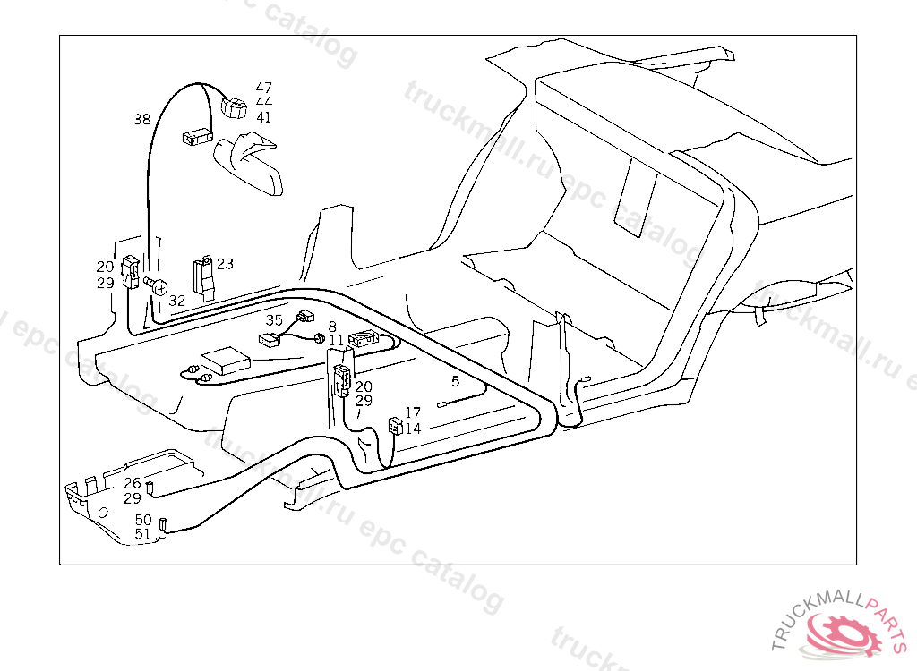 CABLE HARNESS INTERIOR REARVIEW MIRROR,AUTOMATIC. ADJUSTING TO ANTI-DAZZLE POSITION, A 218852 EXCEPT FOR A 103237 - A 218851 WITH CODE 030 F 190065 EXCEPT FOR F 159752 - F 190064 WITH CODE 030