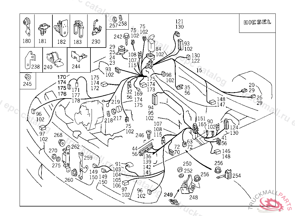 CABLE HARNESS ENGINE CABLE HARNESS,BODY MOUNTED, USED WITH AIR CONDITIONER, A 138855 F 110069 A 218852 EXCEPT FOR A 103237 - A 218851 WITH CODE 030 F 190065 EXCEPT FOR F 159752 - F 190064 WITH CODE 030 AS OF IDENT-NO.: FOR HEADLAMP WIRING HARNESS REFER TO TU 54/121, WITH AIR CONDITIONER REFER TO TU 54/485 ALSO INSTALLED ON A 219847