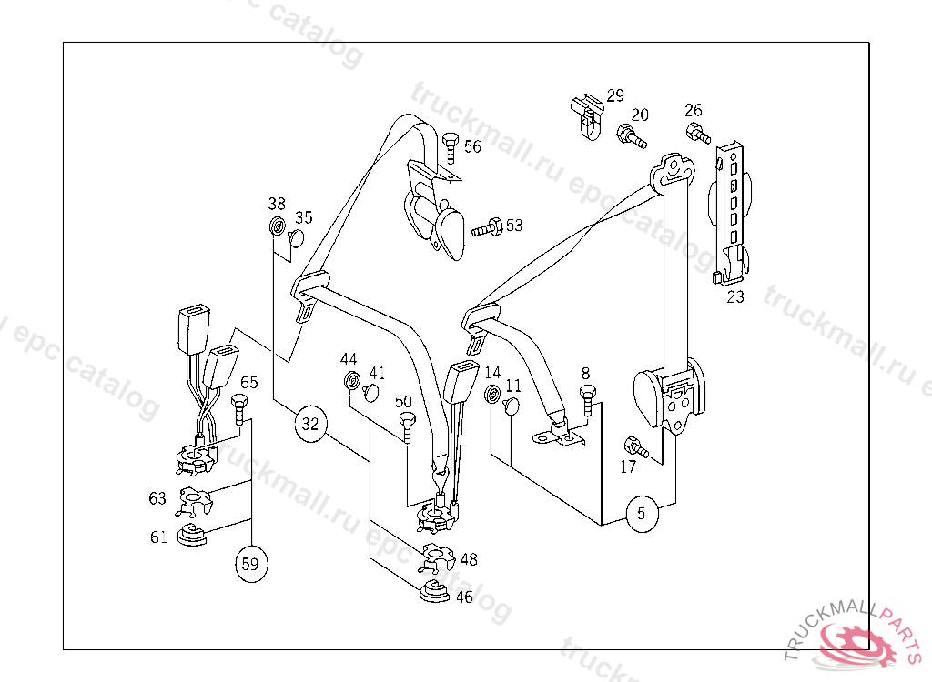 FASTENER DOUBLE, USED FOR REAR SEAT SAFETY BELTS,IN CENTER AND OUTSIDE RIGHT, A 526781 F 575403