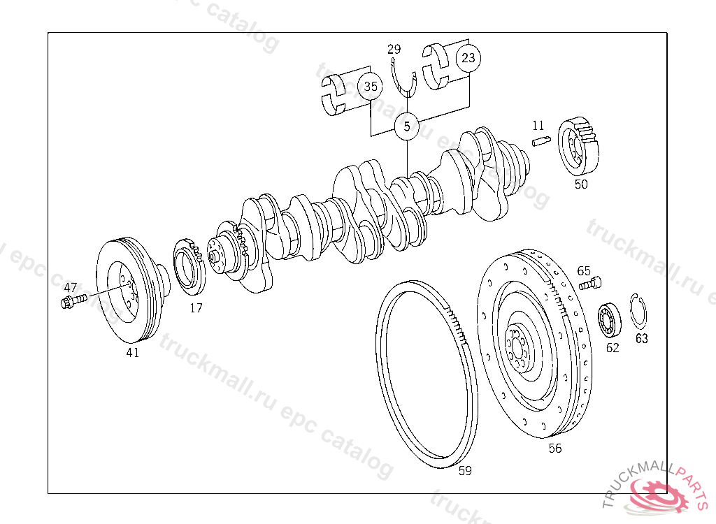 CRANKSHAFT WITH CRANKSHAFT BEARING SHELLS,CONNECTING ROD BEARING SHELLS AND THRUST PLATES, REMAN PART - WHEN YOU ORDER THIS PART PLEASE ADD THE PREFIX"R" IN FRONT OF THE PART NO.