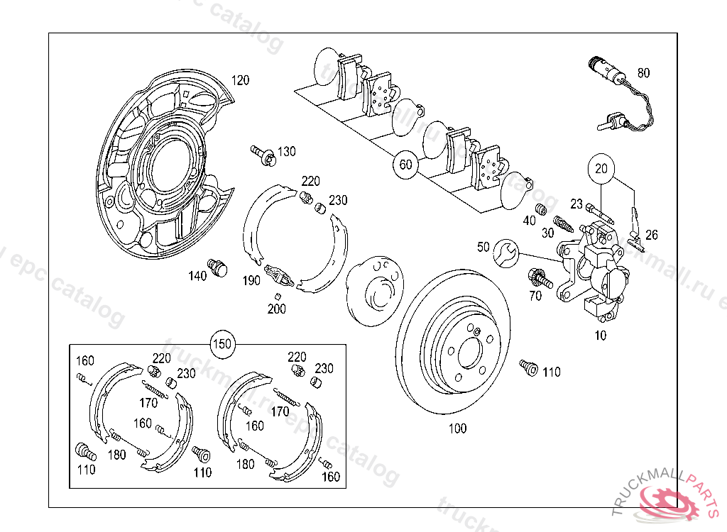 TS BRAKE PAD PARTS KIT, WITHOUT WEAR SENSOR, WHEN SELLING BRAKE LININGS TO END USERS/DESK BUYERS THE A 203 005 25 99 IS TO BE HANDED OVER FREE OF CHARGE