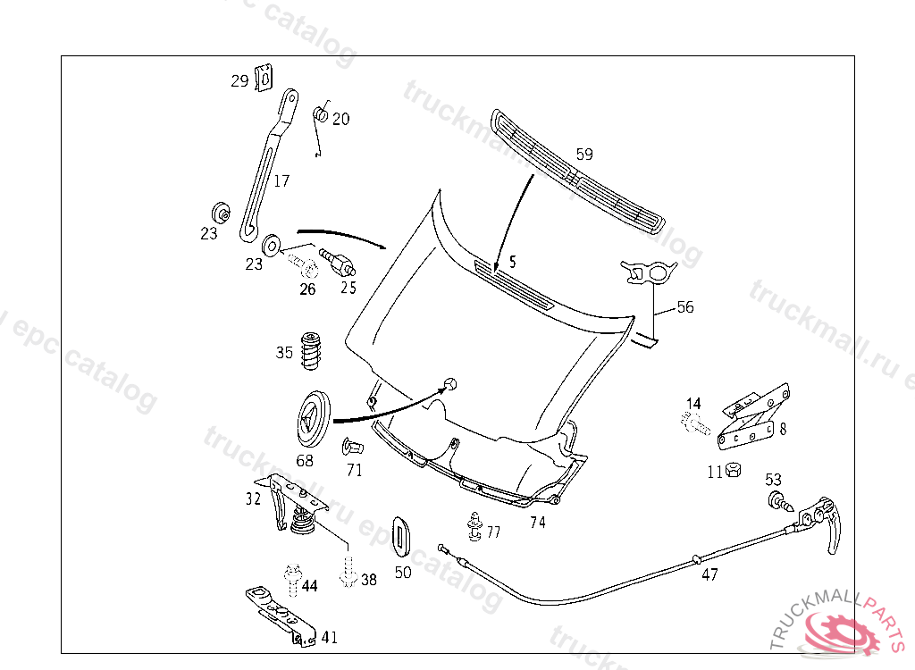 GRILLE ENGINE HOOD, R 42305920020628 A 90477820020827 V 00000120020827